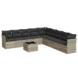 vidaXL Vrtna sedežna garnitura 10-delna z blazinami sv. siv poli ratan