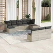 vidaXL Vrtna sedežna garnitura 10-delna z blazinami sv. siv poli ratan