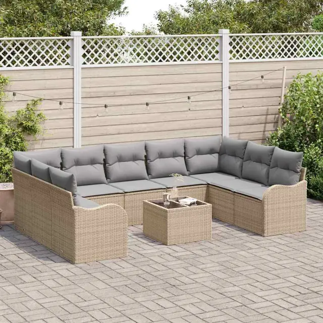 vidaXL Vrtna sedežna garnitura 10 pcs Bež poli ratan
