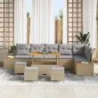 vidaXL Vrtna sedežna garnitura 10 pcs Bež poli ratan