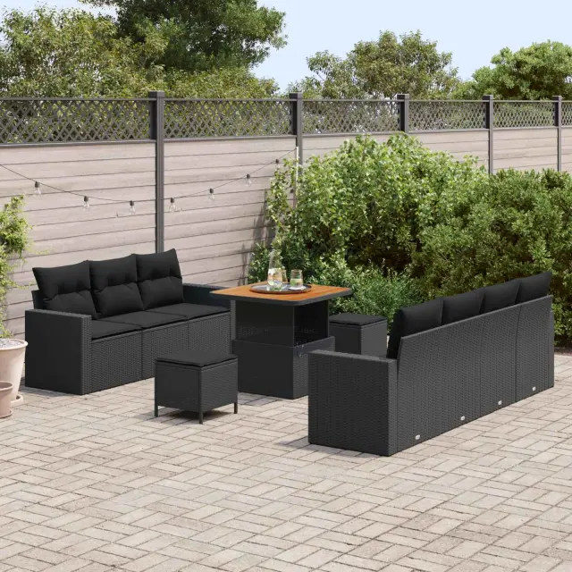 vidaXL Vrtna sedežna garnitura 10 pcs Črna poli ratan