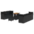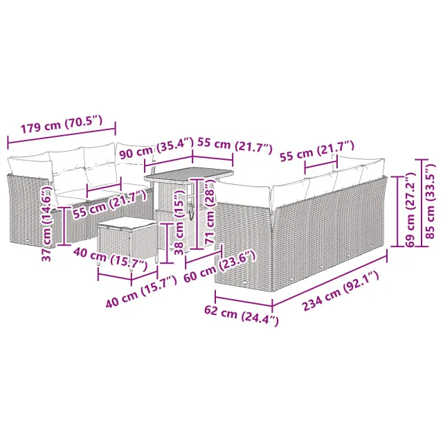 Ta vrtnarska sedežna garnitura prinaša moderno sofisticiranost s svojim privlačnim dizajnom, ki polepša katerikoli zunanji prostor. Združuje funkcionalnost in estetski slog, idealna pa je za druženje na vrtu ali terasi. Kombinacija poliratana in trdnega akacijevega lesa zagotavlja lepote, ki se lepo vklopi v odprte prostore.