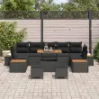 Ta moderna garnitura za vrt je odličen dodatek za vsak zunanj prostor, idealna za ustvarjanje privlačnega prostora za sprostitev in zabavo. Njen eleganten dizajn se brez težav ujema z različnimi stili vrtov in teras ter prinaša pridih sophistication v vaše zunanje okolje. Kombinacija poliratana in trdnega akacijevega lesa poskrbi, da je garnitura vizualno privlačna in funkcionalna za zunanjo uporabo, kar pomeni udobje in vzdržljivost za vse uporabnike.