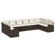 vidaXL Vrtna sedežna garnitura 10 pcs Rjava in bela poli ratan