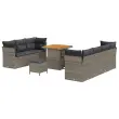Ta vrtnarska sedežna garnitura prinaša moderno sofisticiranost s svojim privlačnim dizajnom, ki polepša katerikoli zunanji prostor. Združuje funkcionalnost in estetski slog, idealna pa je za druženje na vrtu ali terasi. Kombinacija poliratana in trdnega akacijevega lesa zagotavlja lepote, ki se lepo vklopi v odprte prostore.