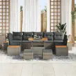Ta moderna garnitura za vrt je odličen dodatek za vsak zunanj prostor, idealna za ustvarjanje privlačnega prostora za sprostitev in zabavo. Njen eleganten dizajn se brez težav ujema z različnimi stili vrtov in teras ter prinaša pridih sophistication v vaše zunanje okolje. Kombinacija poliratana in trdnega akacijevega lesa poskrbi, da je garnitura vizualno privlačna in funkcionalna za zunanjo uporabo, kar pomeni udobje in vzdržljivost za vse uporabnike.
