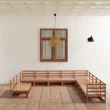 vidaXL Vrtna sedežna garnitura 11-delna medeno rjava trdna borovina