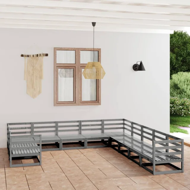 vidaXL Vrtna sedežna garnitura 11-delna trdna borovina