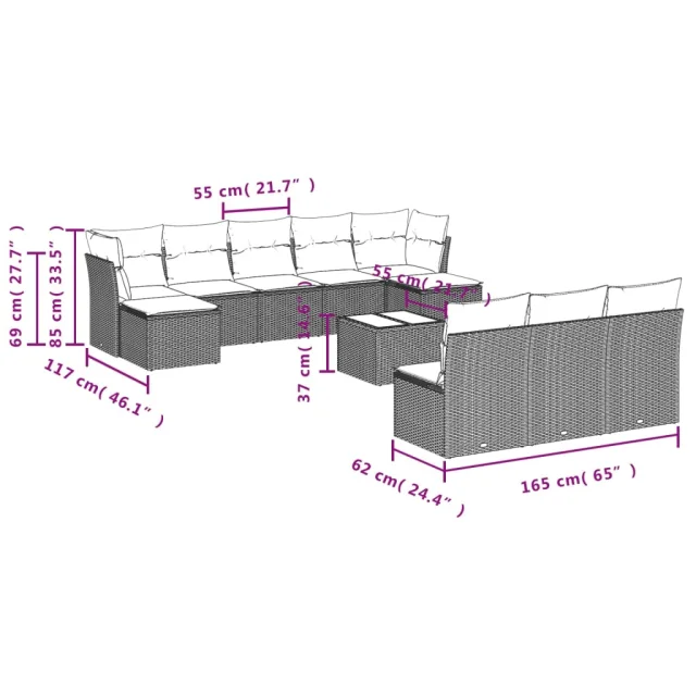 vidaXL Vrtna sedežna garnitura 11-delna z blazinami bež poli ratan
