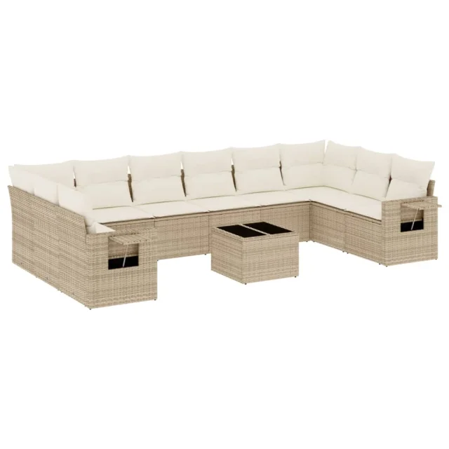vidaXL Vrtna sedežna garnitura 11-delna z blazinami bež poli ratan