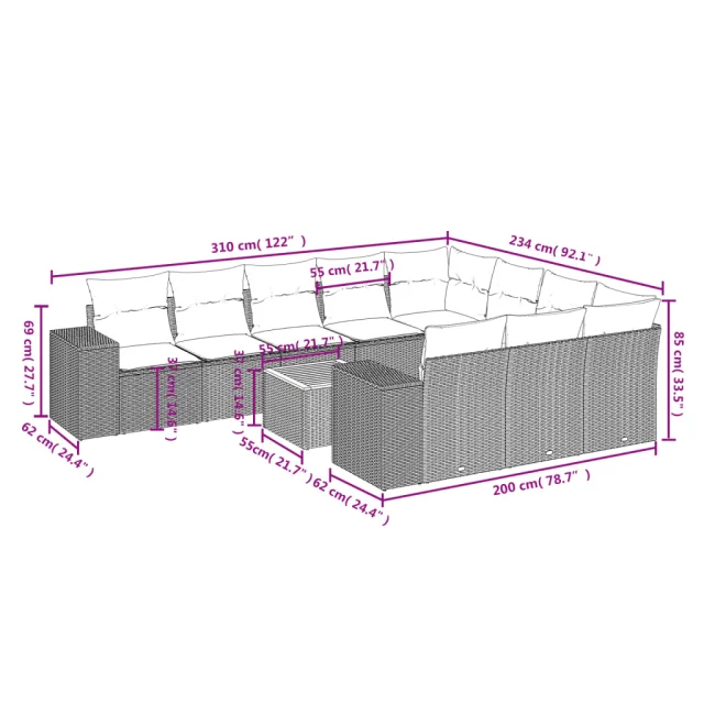 Ta vrtna sedežna garnitura je popoln dodatek za vaše dvorišče, teraso ali verando, saj zagotavlja udoben in vabljiv prostor za klepet z družino in prijatelji ali preprosto za sprostitev in uživanje na prostem.