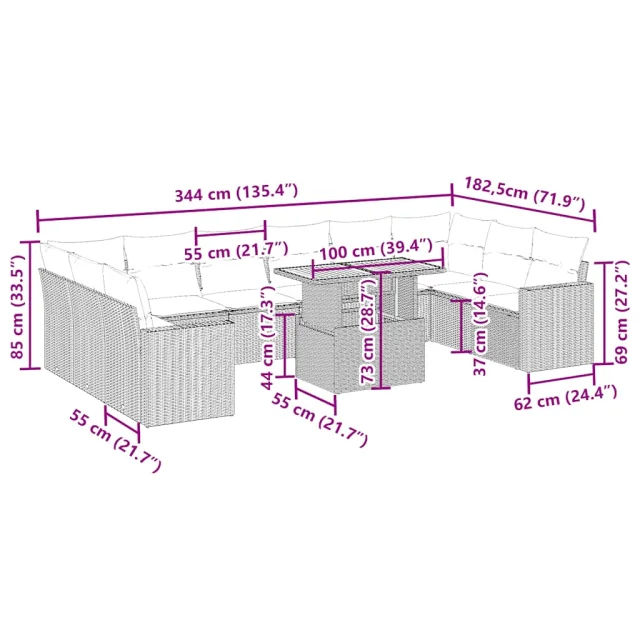 Ta vrtna sedežna garnitura je popoln dodatek za vaše dvorišče, teraso ali verando, saj zagotavlja udoben in vabljiv prostor za klepet z družino in prijatelji ali preprosto za sprostitev in uživanje na prostem.