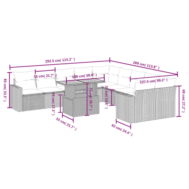 Ta vrtna sedežna garnitura je popoln dodatek za vaše dvorišče, teraso ali verando, saj zagotavlja udoben in vabljiv prostor za klepet z družino in prijatelji ali preprosto za sprostitev in uživanje na prostem.