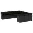 vidaXL Vrtna sedežna garnitura 11-delna z blazinami črn poli ratan