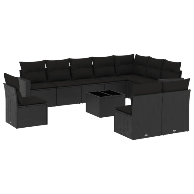 vidaXL Vrtna sedežna garnitura 11-delna z blazinami črn poli ratan