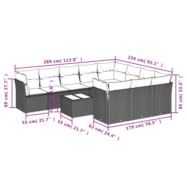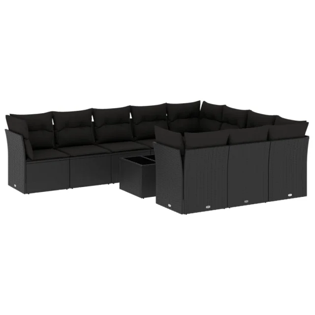 vidaXL Vrtna sedežna garnitura 11-delna z blazinami črn poli ratan
