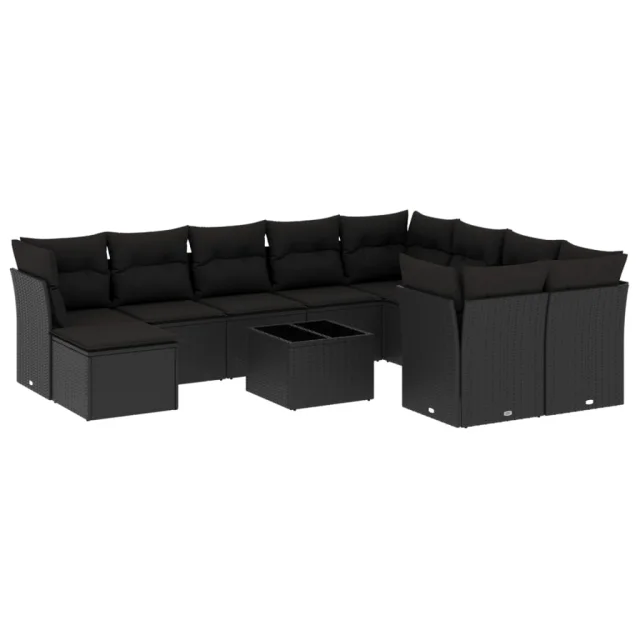 vidaXL Vrtna sedežna garnitura 11-delna z blazinami črn poli ratan