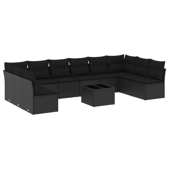 vidaXL Vrtna sedežna garnitura 11-delna z blazinami črn poli ratan