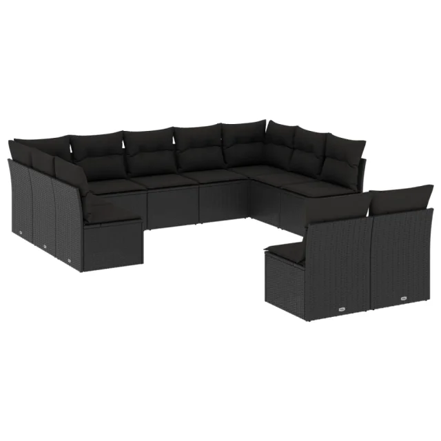vidaXL Vrtna sedežna garnitura 11-delna z blazinami črn poli ratan