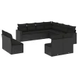 vidaXL Vrtna sedežna garnitura 11-delna z blazinami črn poli ratan