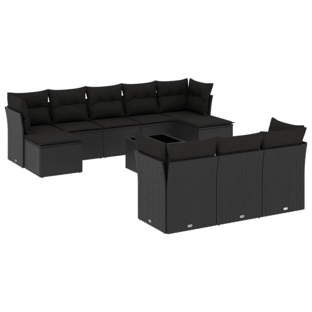 vidaXL Vrtna sedežna garnitura 11-delna z blazinami črn poli ratan