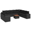vidaXL Vrtna sedežna garnitura 11-delna z blazinami črn poli ratan