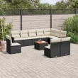 vidaXL Vrtna sedežna garnitura 11-delna z blazinami črn poli ratan