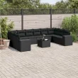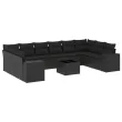 vidaXL Vrtna sedežna garnitura 11-delna z blazinami črn poli ratan