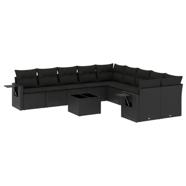 vidaXL Vrtna sedežna garnitura 11-delna z blazinami črn poli ratan