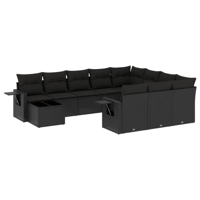 vidaXL Vrtna sedežna garnitura 11-delna z blazinami črn poli ratan