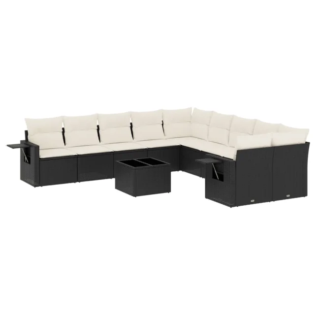 vidaXL Vrtna sedežna garnitura 11-delna z blazinami črn poli ratan