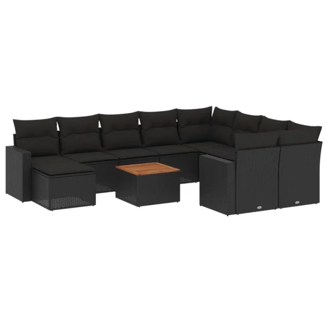 vidaXL Vrtna sedežna garnitura 11-delna z blazinami črn poli ratan