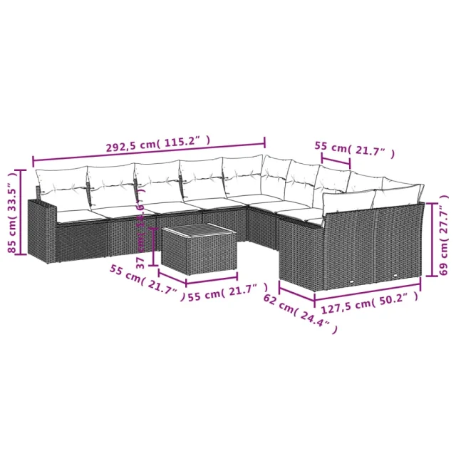 vidaXL Vrtna sedežna garnitura 11-delna z blazinami črn poli ratan