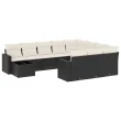 vidaXL Vrtna sedežna garnitura 11-delna z blazinami črn poli ratan