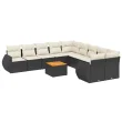 vidaXL Vrtna sedežna garnitura 11-delna z blazinami črn poli ratan