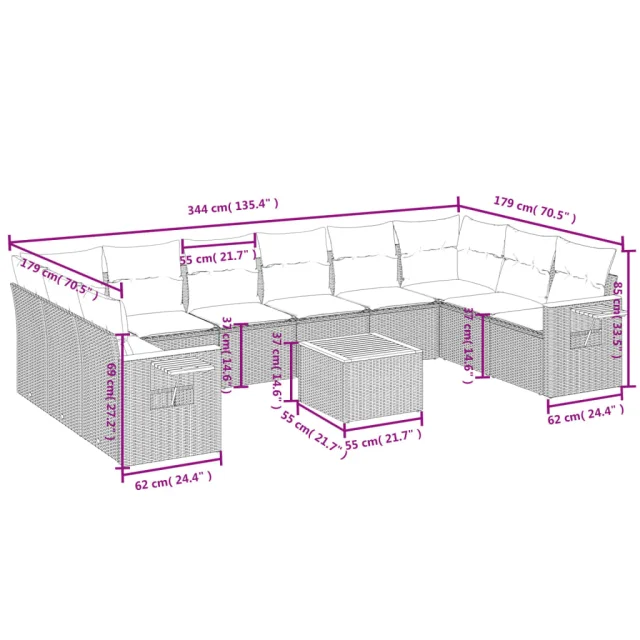 Ta vrtna sedežna garnitura je popoln dodatek za vaše dvorišče, teraso ali verando, saj zagotavlja udoben in vabljiv prostor za klepet z družino in prijatelji ali preprosto za sprostitev in uživanje na prostem.