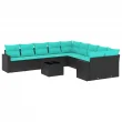 vidaXL Vrtna sedežna garnitura 11-delna z blazinami črn poli ratan
