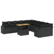 vidaXL Vrtna sedežna garnitura 11-delna z blazinami črn poli ratan