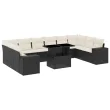 vidaXL Vrtna sedežna garnitura 11-delna z blazinami črn poli ratan