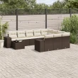 vidaXL Vrtna sedežna garnitura 11-delna z blazinami rjava poli ratan