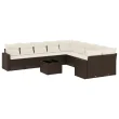 vidaXL Vrtna sedežna garnitura 11-delna z blazinami rjava poli ratan