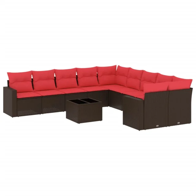 vidaXL Vrtna sedežna garnitura 11-delna z blazinami rjava poli ratan