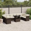 vidaXL Vrtna sedežna garnitura 11-delna z blazinami rjava poli ratan