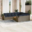 vidaXL Vrtna sedežna garnitura 11-delna z blazinami siv poli ratan