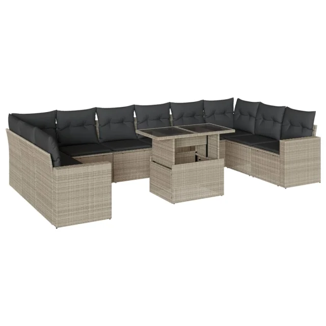 vidaXL Vrtna sedežna garnitura 11-delna z blazinami sv. siv poli ratan