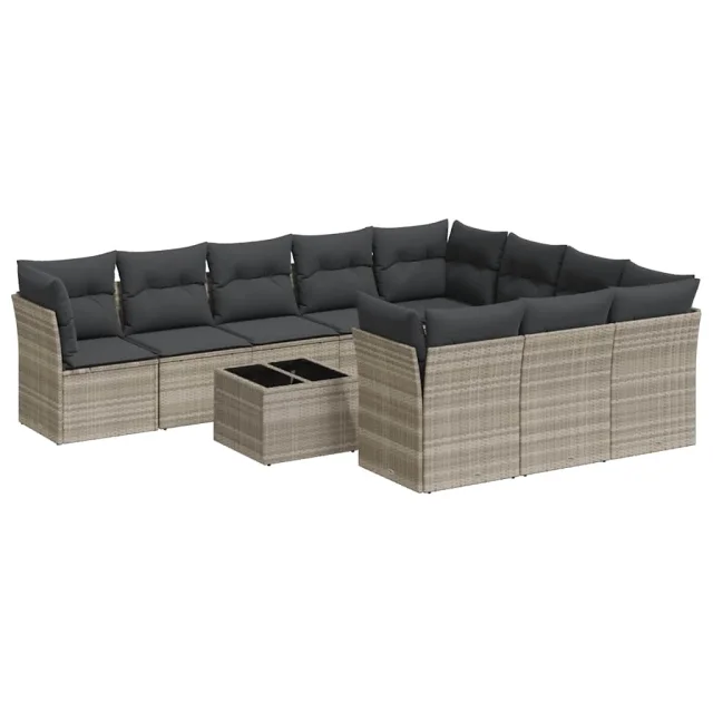 vidaXL Vrtna sedežna garnitura 11-delna z blazinami sv. siv poli ratan