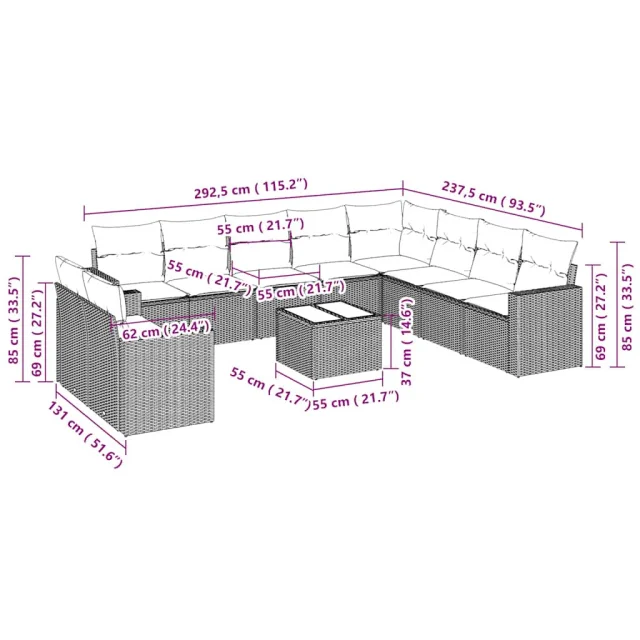 vidaXL Vrtna sedežna garnitura 11-delna z blazinami sv. siv poli ratan