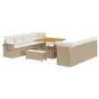 Modularni vrtnarski kavč se super poda k sodobnim zunanjim prostorom z minimalističnim dizajnom in čistimi linijami. Ta vsestranski set ponuja funkcionalnost in estetiko, zato je odlična izbira za vse, ki iščejo udobje in eleganco na terasi.