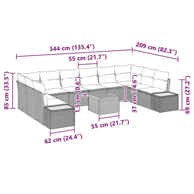 Ta vrtna sedežna garnitura z blazinami združuje stil in praktičnost, kar jo dela odlično izbiro za vsak zunanji prostor. Dobro je izdelana, moderna zasnova in čiste linije pa se super podajo za sproščanje ali druženje s prijatelji. Zaradi svojega sodobnega videza je idealna za vrtove in terase, saj vaš zunanji prostor spremeni v udoben prostor za počitek. Tekstura doda pridih stila, kar obesedijo doda privlačnost, hkrati pa je uporabna. Samo predstavljajte si, kako se sproščate obdan z naravo in udobjem, s tem setom kot osrednjim elementom.
