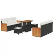 vidaXL Vrtna sedežna garnitura 11 pcs Črna in krem poli ratan